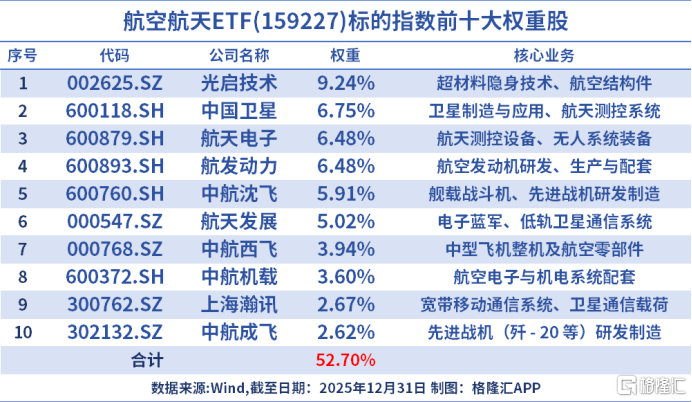 以本次入选2026年格隆汇“全球视野 下注中国”十大核心ETF--航空航天ETF(159227)为例。