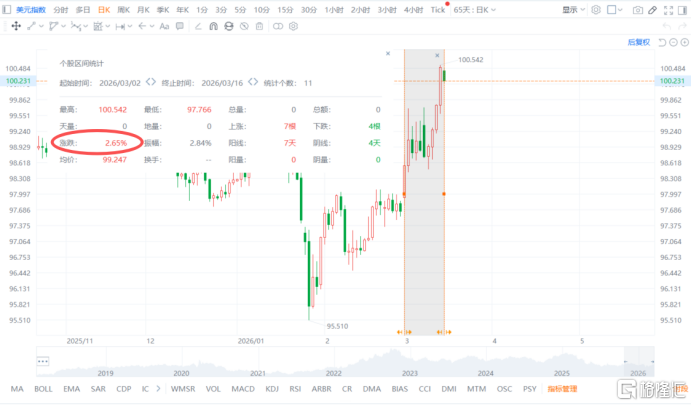 自美伊冲突爆发以来,美元持续走强,涨幅已超2%。