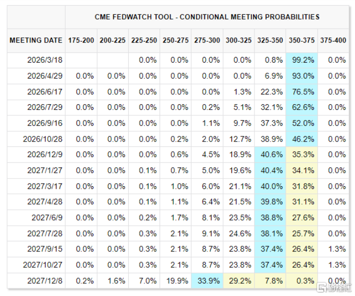 据CME“美联储观察”,3月美联储降息的概率为0.8%,维持利率不变的概率为99.2%。