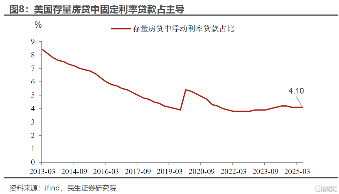 外加存量房贷利率偏低,居民不愿买也不愿卖。截至2025年第二季度,美国存量房贷中,超过52%的居民手中的房贷利率不及4%,这意味着除非利率大幅下降,居民并不乐意去置换。这会导致二手房的交易萎缩,因为供给减少。