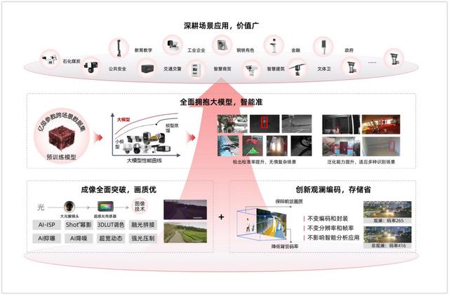 而到了企业领域,依然需要一种方式能让大模型和生产场景有效结合,发挥作用。这就是海康观澜大模型从内而生的好处:天然适应自身的业务场景,把安防、工业、交通等原本的视觉场景做深:从“看得见”升级到“看得懂”,而且还能实现商业化。