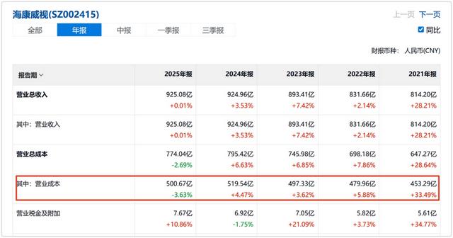 不过,仅从数据看,2025年开始,海康显然迎来了周期更迭。营业成本从2024年的795.42亿元,降到2025年的774.04亿元,多年来首次成本回落。毛利率开始恢复,配合费用控制,利润在营收持平的前提下实现了两位数增长——上一次还是在2021年。