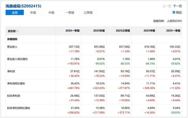 但2026年一季报画面风格突变,而同期发布的2025年年报则显示,在营收几乎持平的情况下,海康的净利润已经恢复增长,全年利润增速达到18%,毛利率、净利率和经营现金流同时改善。风向,又改变了。