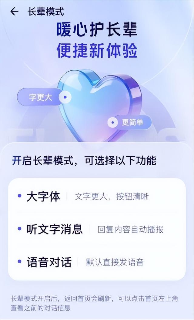 大字模式下,按钮清晰明了,他不需要打字,只要用最熟悉的湖南方言对着屏幕说:“这两天膝盖疼,是不是要变天?”