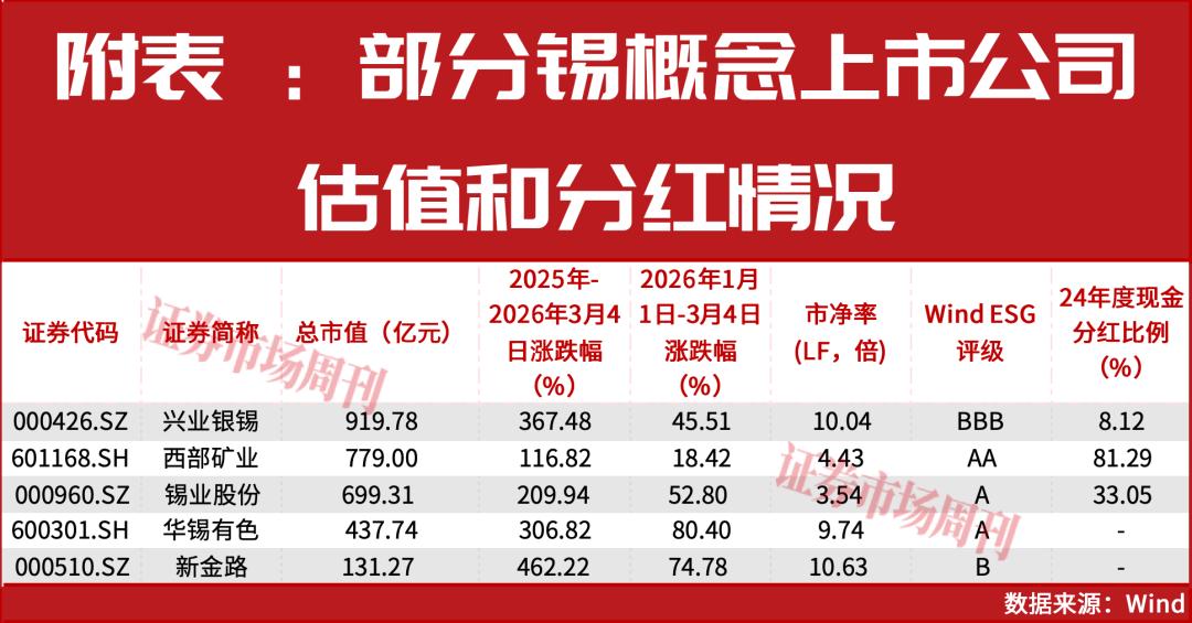 锡价大涨带动锡企股价飙升,但企业间业绩、分红与ESG表现分化。