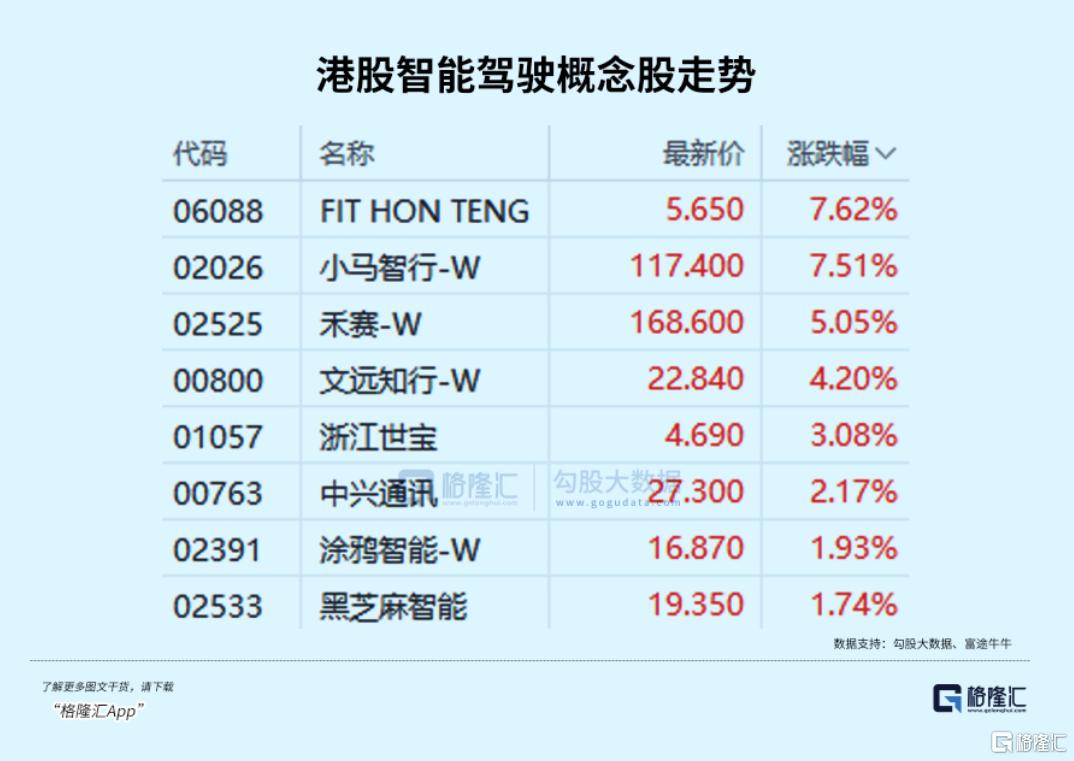 而国内方面,自动驾驶L3陆续推进,受这些消息催化,港股智驾概念股继续走高。