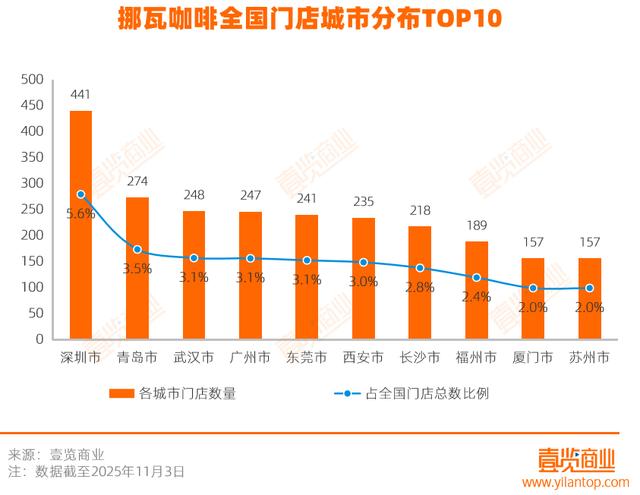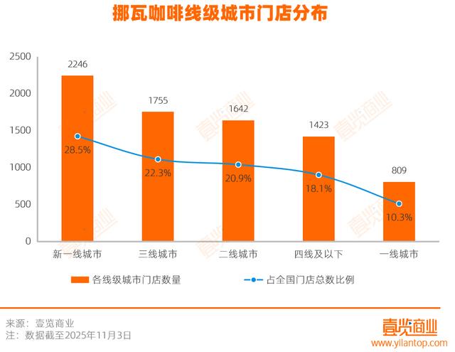 相比之下,挪瓦咖啡在一线城市的门店数量最少,仅为809家,占全国门店总数的10.3%。