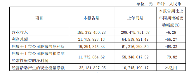 从年报看,奥泰生物的盈利能力正在经受考验,然而,奥泰生物业绩恶化的趋势并没有停止,同日发布的奥泰生物2026年一季报显示,一季度公司主营收入1.95亿元,同比下降6.29%;归母净利润1939.43万元,同比下降68.32%;扣非净利润1177.29万元,同比下降79.82%。同时,经营活动的现金流也由正转负,从去年同期的净流入1074.52万元变为净流出3218.18万元,显示出主营业务“造血”能力的减弱。