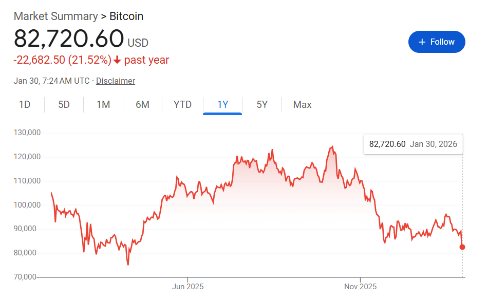 周五,比特币一度下跌3.9%,至每盎司81102美元,创下去年11月21日以来的最低水平,延续了隔夜加速的跌势。目前,比特币价格较10月6日创下的历史高点下跌超过34%。
