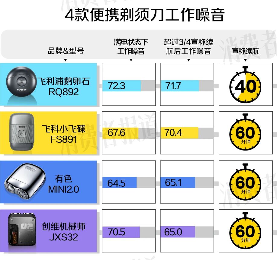 测试还显示,低电量状态下噪音并不一定下降,也不影响剃须效果。消道长记录了4款剃须刀运行至超过宣称续航时长3/4后的噪音值,仅创维机械师的噪音值有所下降。而从上述锋利度测试结果来看,低电量不会影响刀头的切割效果。消费者没有必要以噪音高低评判剃须刀的剃须效果。