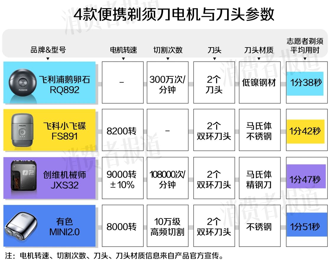注:1、文中“便携剃须刀”特指“便携电动剃须刀”。2、文中主观评价均由志愿者主观体验得出。