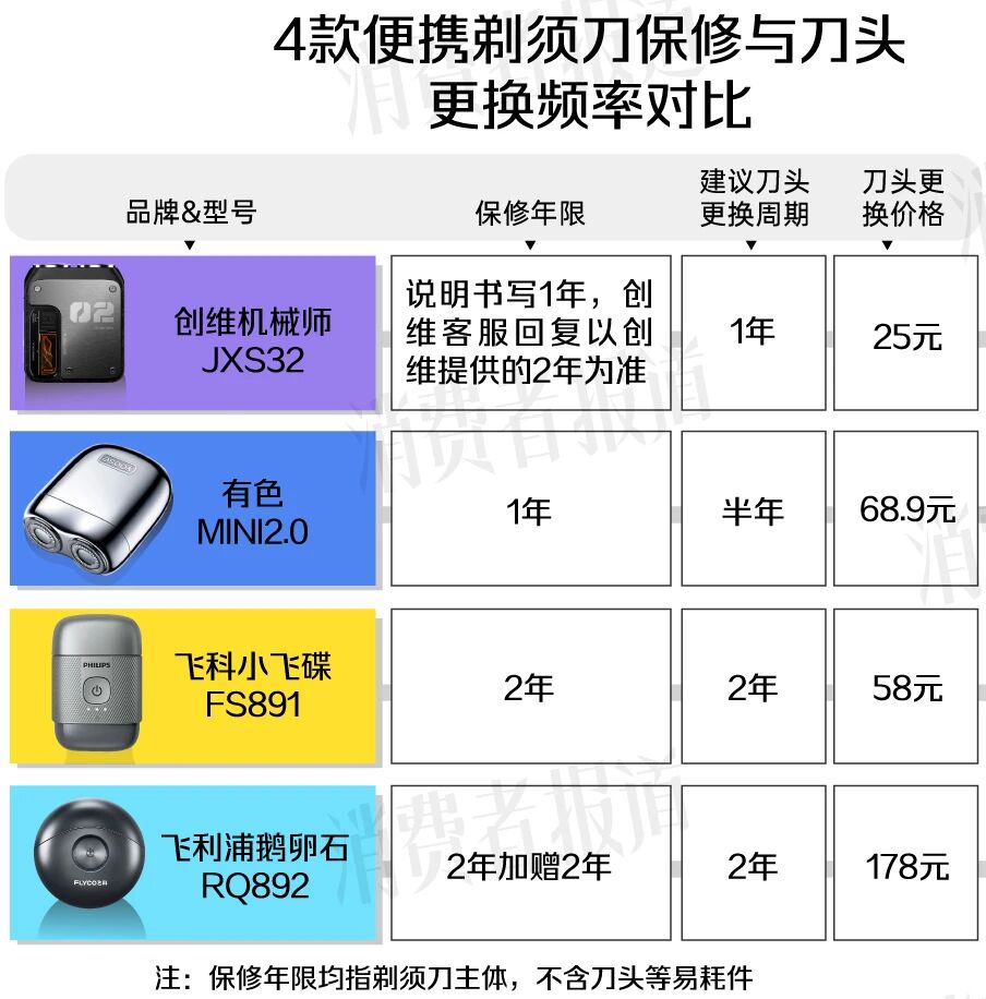 更换刀头涉及到长期使用成本。从品牌官方建议的更换频率来看,飞利浦、飞科的刀头耐用性更好,2年更换一次即可。有色MINI2.0更换成本较高:每隔半年更换一次刀头,单次更换费用近70元。这意味着,若使用2年半以上,刀头更换费用将超过机身价格。