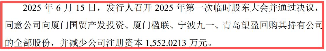 其中,赛克赛斯于2025年7月、8月向厦门国贸产发投资、厦门楹联、宁波九一、青岛望盈回购其持有公司的全部股份,并减少注册资本1552.0213万元,分别作价7015万元、3592万元、1757万元、1519万元,合计1.39亿元。