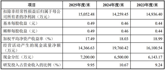 最新招股书显示,赛克赛斯2023年、2024年和2025年度净利润分别约为1.53亿元、1.61亿元和1.68亿元,扣非后净利润分别约为1.49亿元、1.43亿元和1.51亿元,核心盈利能力并未实质性提升。