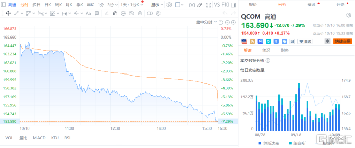 10月10日,中国市场监管总局宣布,因高通公司收购以色列车联网芯片设计企业Autotalks未依法申报经营者集中,涉嫌违反《中华人民共和国反垄断法》,市场监管总局依法对其开展立案调查。 消息一出,截至收盘,高通股价下跌7.29%。
