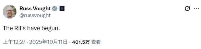 白宫预算主任Russ Vought:联邦政府裁员程序已正式启动