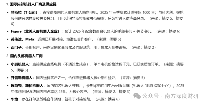 在客户方面,公司口径披露较少,从公开资料来看,客户群体海量,包括国际头部机器人特斯拉、Figure、国内头部机器人小鹏机器人等,以及机器人核心供应链企业科达利、拓普、三花等都是公司客户。