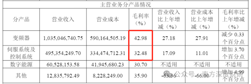 2025年三季报,变频器和伺服业务增速有所下滑,分别同比增长16.7%、10.9%,毛利率双双下滑了1个百分点左右。