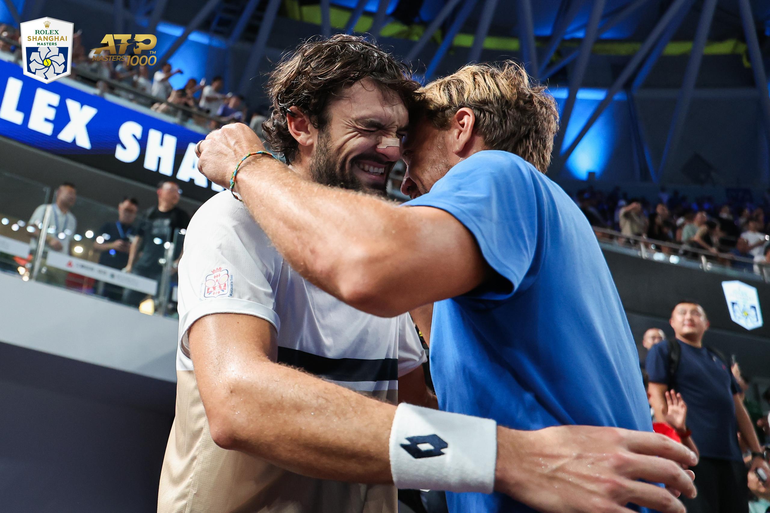 2025年上海劳力士大师赛单打冠军瓦朗坦·瓦舍罗(右)及亚军阿蒂尔·林德克内希