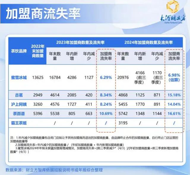 另据财立方智库最新发布的新茶饮研究报告,2024年古茗闭店率达到6.8%。同时,古茗加盟商流失率居高,达到15.18%,远高于沪上阿姨、蜜雪冰城等同行业品牌。