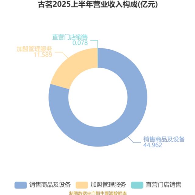 以2025年上半年财报为例,古茗上半年营收为56.63亿元,其中,具体来自销售商品及设备的收入为44.962亿元;来自加盟管理服务11.589亿元;来自直营门店销售的收入仅为0.078亿元,在总收入中的占比为0.1%。