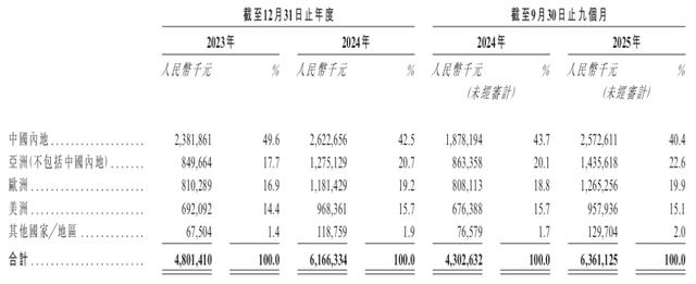 在明确的全球化战略规划下,绿联科技来自海外市场的收入由2023年的24.20亿元增至2024年的35.44亿元,增幅约为46.5%;2025年前三季度,该公司的海外市场收入进一步增长56.3%至37.8亿元,在总收入中的也达到了59.6%。