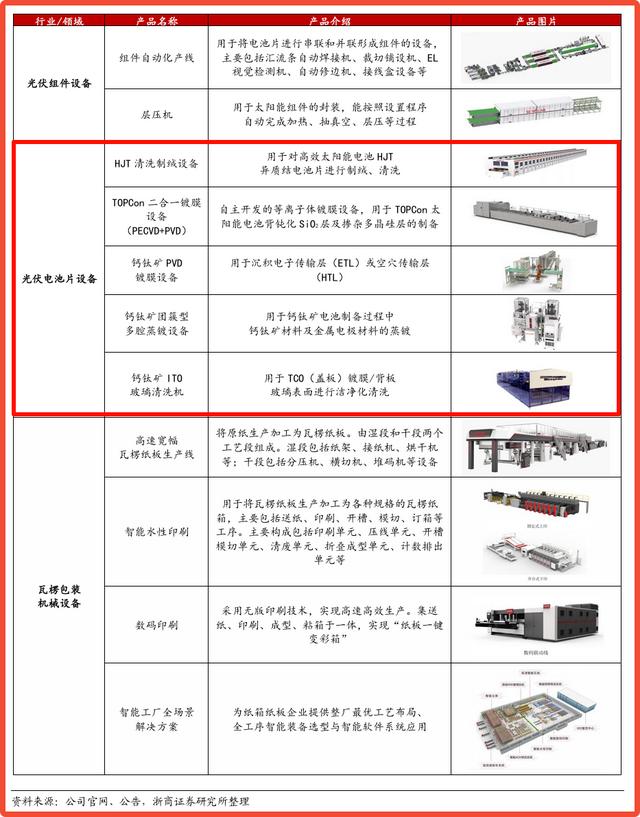 2022年6月,京山轻机宣布钙钛矿电池团簇型多腔式蒸镀设备已量产。所谓蒸镀设备,是钙钛矿电池制备四大核心设备之一,技术难度极高。京山轻机由此形成了完整的产品体系。