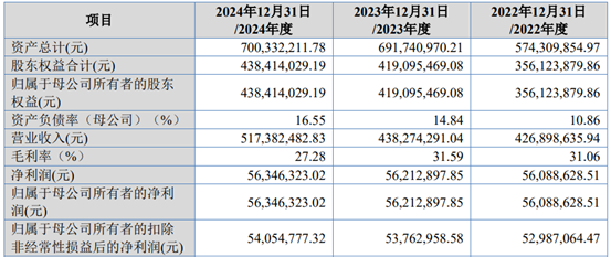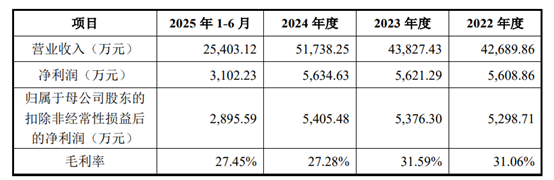 如果合规问题是定时炸弹,那么财务数据的趋势更像是慢性失血。招股书显示,2022年至2024年,吉和昌营业收入分别为4.27亿元、4.38亿元、5.17亿元,年化复合增速约10%;扣非净利润分别为5298.71万元、5376.3万元、5405.48万元,几乎“原地踏步”。