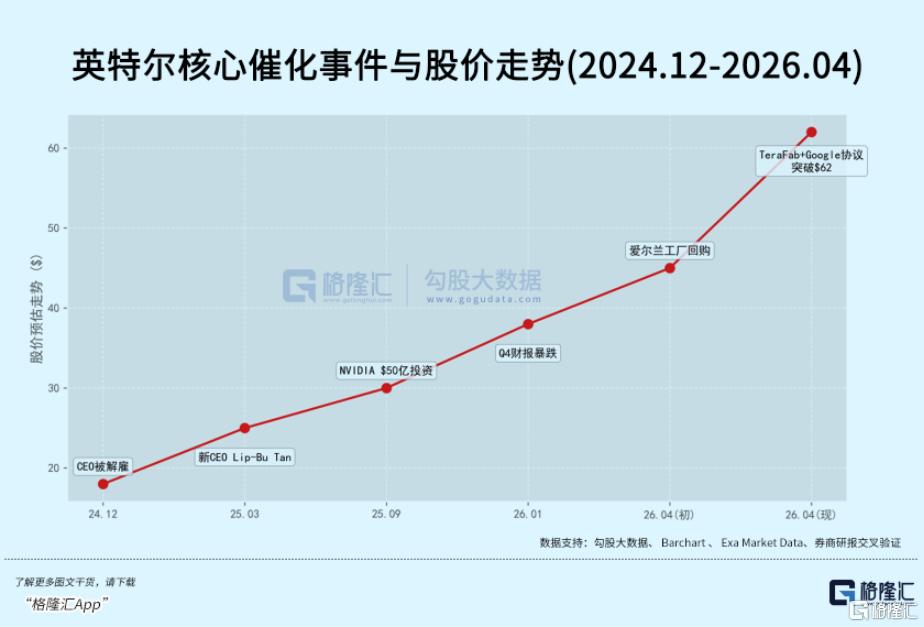 七个交易日,英特尔股价就从$40直冲$62,暴涨50%