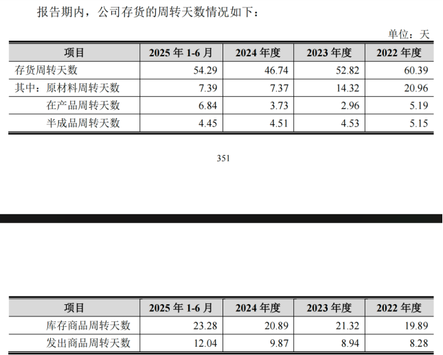 存货管理方面,2022-2024年及2025年1-6月,公司库存商品周转天数在20天左右波动,发出商品周转天数则由8.28天逐步增至12.04天。公司解释,库存商品因连续生产及保障供货需要,保持约1-2周安全库存;发出商品周转天数增加则主要源于寄售模式收入占比持续上升。需说明的是,发出商品主要为应部分客户要求,在确认收入前暂存于客户指定仓库的货物。
