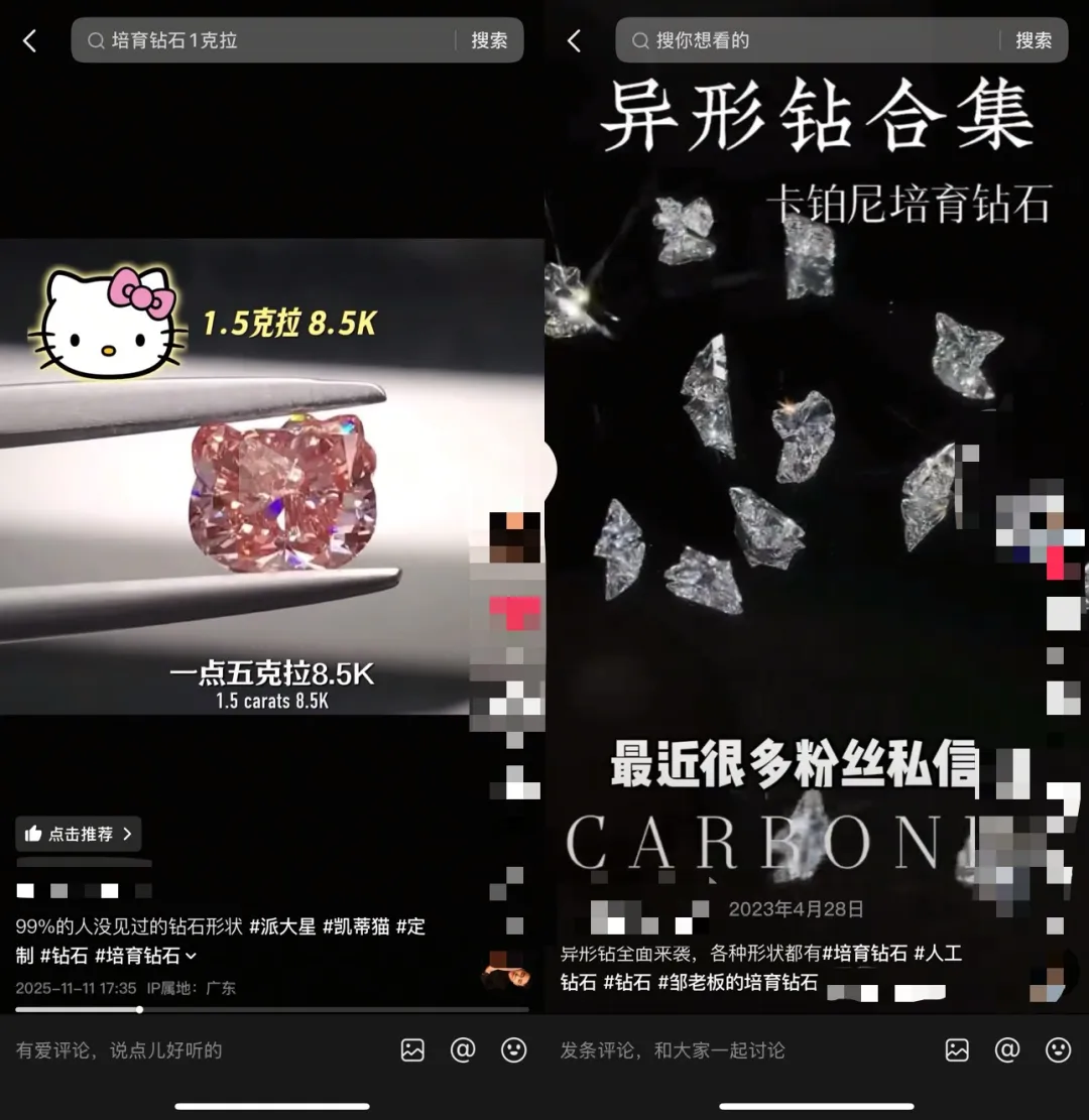 有受访培育钻商家表示,今年他们已经连续5个月B端增量创新高了。一些更宏观的数据可以说明培育钻石市场当前的火热——据央视财经报道,2025年在全球钻石珠宝市场中,培育钻石销量占比已超过40%,较2019年增长超过8倍。