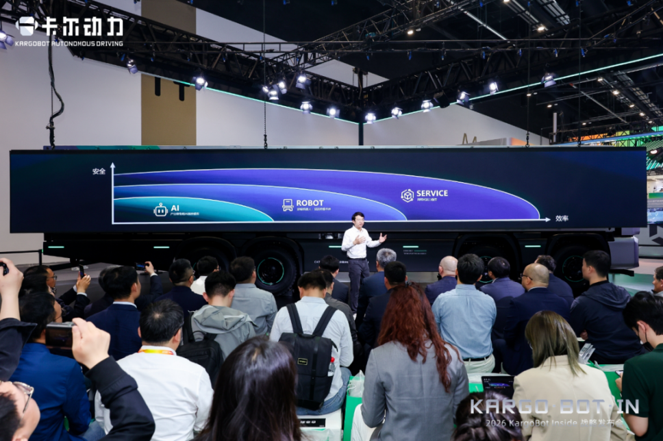而本次发布的KargoBot Inside“卡尔引擎”战略,是卡尔动力打造的“AI+Robot+Service”全栈货运解决方案,通过构建产业级物理AI+自主智能本体+网络服务化的全栈能力,与产业伙伴一道构建未来运输的基础设施。