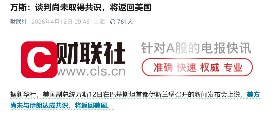 4月12日,巴基斯坦伊斯兰堡,美国副总统万斯站在新闻发布会台前,用一句话为这场备受全球瞩目的美伊谈判画上了句号:“我们将在未达成协议的情况下返回美国。”