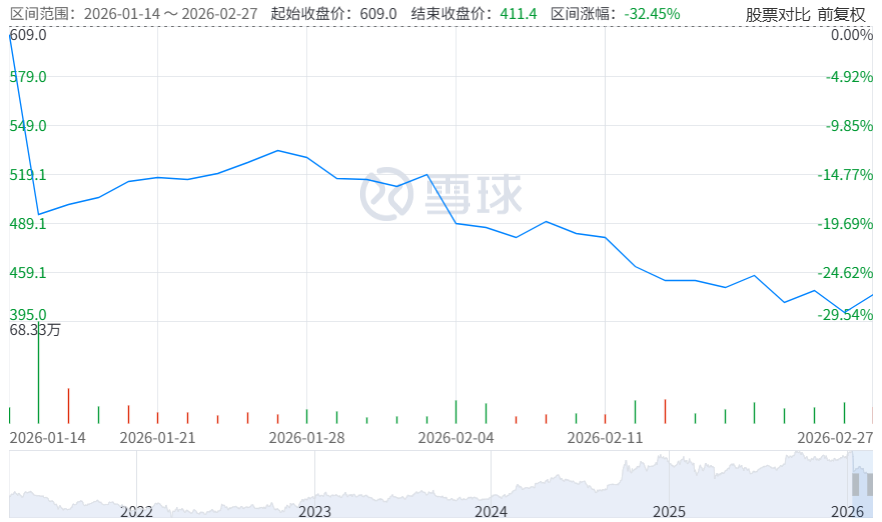 市场层面,截至2月27日下午港股收盘,携程股价报411.4港元,上涨2.75%,总市值2688.92亿港元。