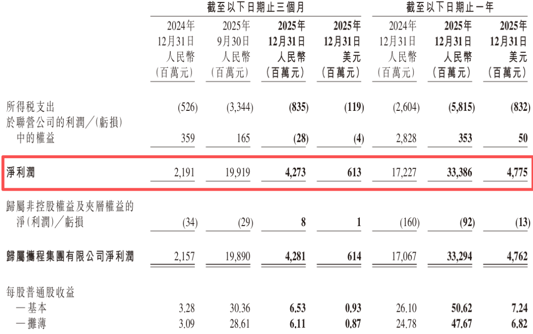 2月26日早间,携程集团-S(09961.HK)披露2025年第四季度及全年未经审计业绩。