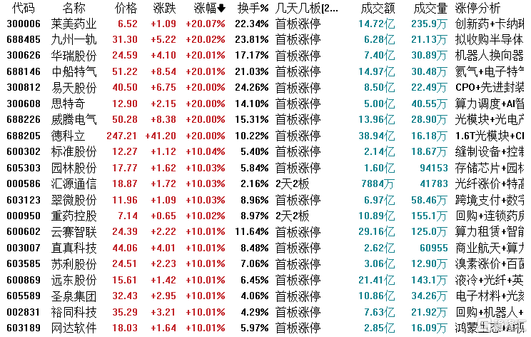 连板股方面,新能泰山9天7板,津药药业6连板,重药控股、汇源通信等2连板,云赛智联裕同科技等涨停。