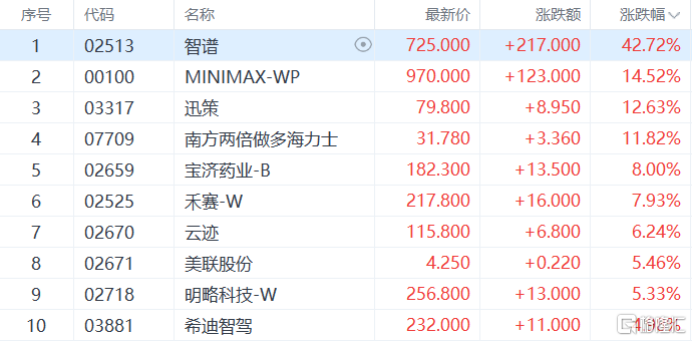 次新股上涨,智谱涨超40%,MINIMAX、迅策、云迹等多股跟涨。