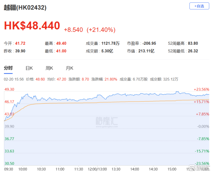 越疆涨21.4%,报48.44港元。消息面上,马年春晚引爆机器人热潮,松延动力、宇树科技、魔法原子、银河通用四家机器人公司今年分别亮相小品、武术、歌曲及微电影四大类节目。东吴证券认为,21-25年机器人产业链完成从0-1的发展,而展望26年国内头部企业将同时开启大规模量产,开启1-10的新篇章。