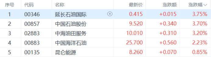 石油股走强,延长石油国际领涨,中国石油股份、中海油田服务、中国海洋石油等纷纷上涨。