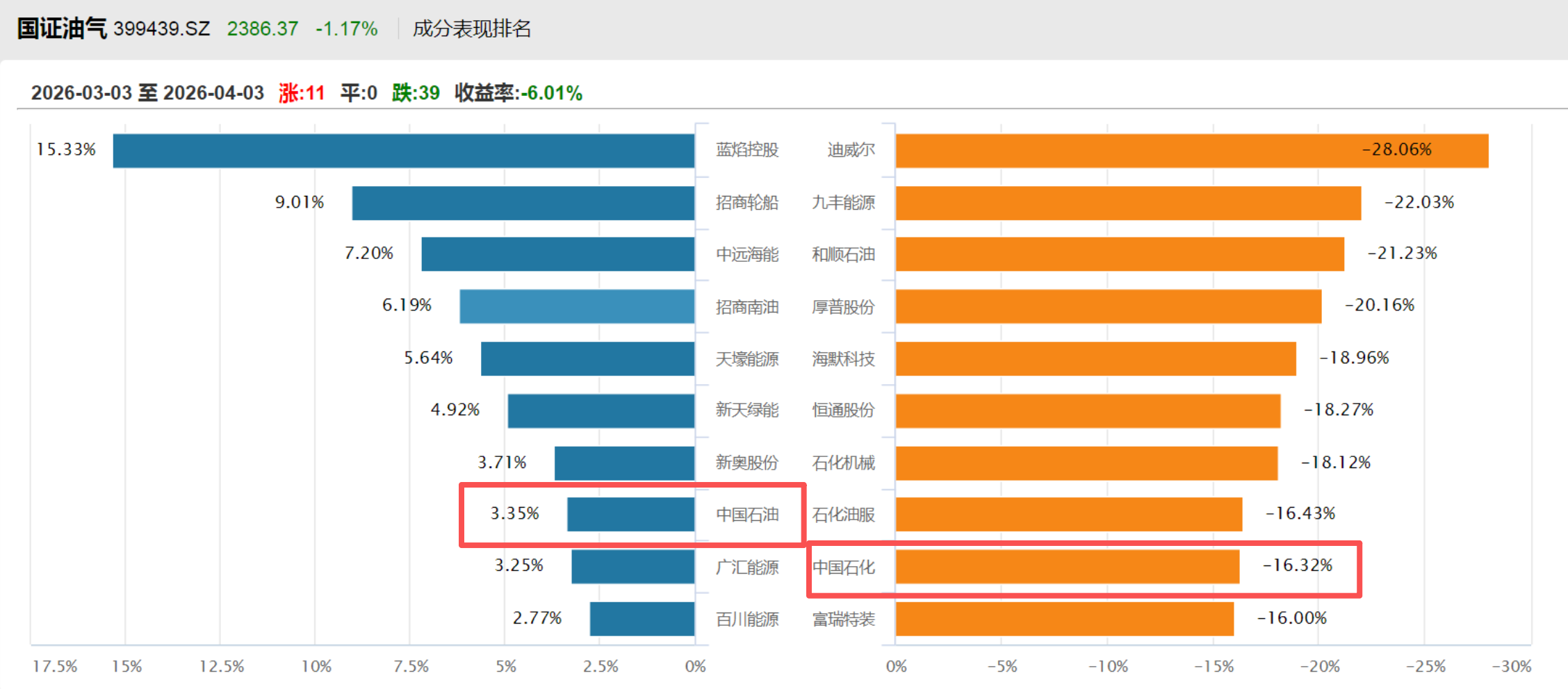 股价也反映了这一点,最近一个月,中国石油涨超3%,下游的中国石化则下跌超16%。