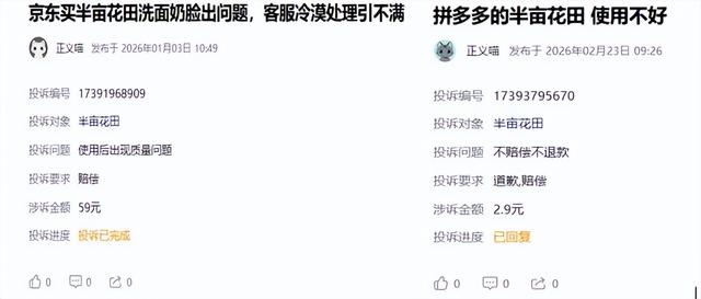 消费者吐槽半亩花田产品