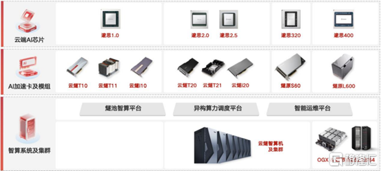 燧原科技自研迭代了四代架构5款云端AI芯片,构建了覆盖AI芯片、AI加速卡及模组、智算系统及集群和AI计算及编程软件平台的完整产品体系。