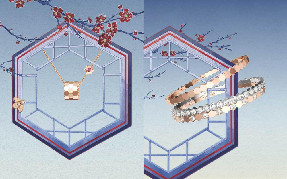 尚美巴黎特别呈献Bee de Chaumet系列中国区新年限量版项链,新作于链条位置匠心镶嵌一颗璀璨红宝石,宛如一支红梅精巧绽放于蜂格之上,为新春注入鸿运当头的吉祥寓意。Bee de Chaumet系列源于灵韵自然的几何蜂巢设计,与中式六角窗的雪花纹样灵感相契,更传递“六合六顺”的动人祝福。