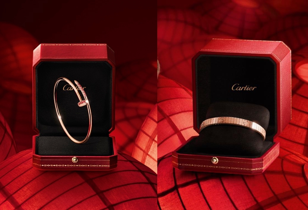 卡地亚发布2026新春大片,以标志性猎豹形象为视觉线索,展开一段充满温度与欢愉的新春叙事。Juste un Clou系列手镯于新春之际首发,20颗红宝石镶嵌于玫瑰金之上,在利落线条中注入节日光彩。LOVE Unlimited手链则以多枚槽纹链节相连,标志性螺钉元素逐一经手工抛光处理,手链设计贴合手腕曲线,尽显优雅与珍贵质感。