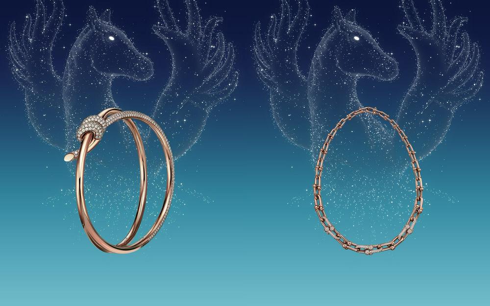 蒂芙尼全新广告视觉呈现的飞马图案,源自品牌珠宝与高级珠宝首席艺术官Nathalie Verdeille,基于传奇设计师让·史隆伯杰的奇幻设计而创作的一枚胸针作品。在飞马图案映衬下,一系列蒂芙尼经典作品以璀璨光芒共贺新岁。Tiffany Knot系列从1889年的绳结作品中汲取灵感,象征爱的不渝联结,该系列更推出新春全球首发款项链,以粉色蓝宝石镶嵌注入节令活力。象征爱与力量的Tiffany HardWear系列,则以张弛有度的链环设计传递自信从容的态度。