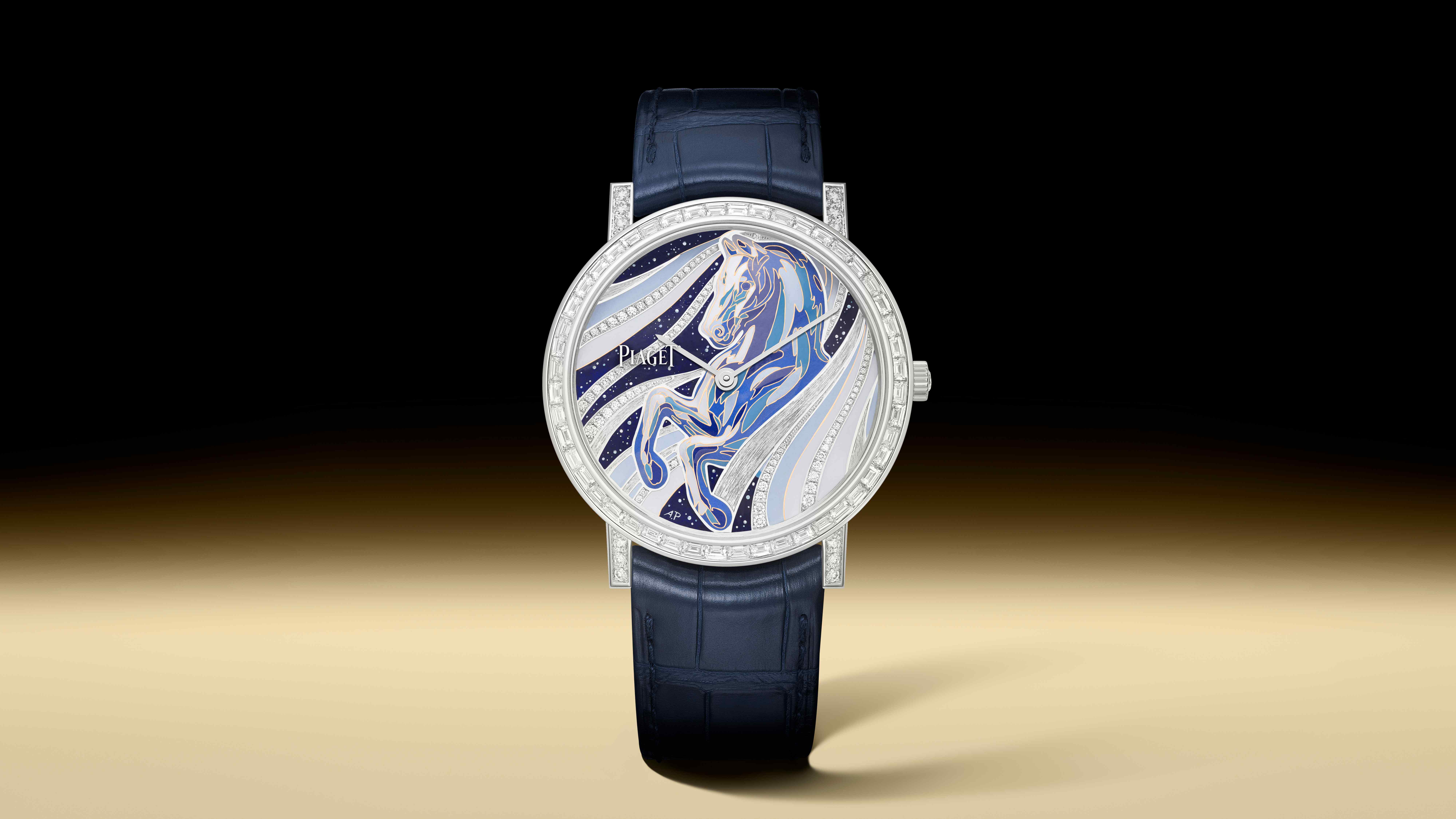 伯爵携手珐琅工艺大师Anita Porchet呈献Altiplano至臻超薄系列马年限定腕表。新作限量发行18枚,表圈镶嵌长阶梯形切割钻石,勾勒出骏马奔腾的力量与速度感。表耳线条柔和流畅,饰以明亮式切割钻石,自然延展表壳弧度,表冠点缀玫瑰式切割钻石,于光影流转间增添华彩。腕表搭载伯爵830P手动上链机芯,并配以标志性的Altiplano至臻超薄系列白金表壳,延续一贯的纯粹与优雅。