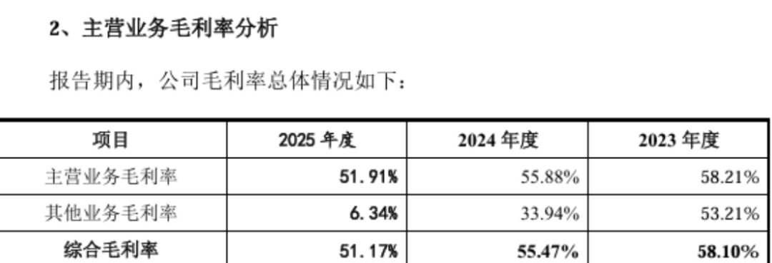 在第二轮审核问询函回复中,公司表示,2025年,归母净利润较2024年减少6205.06万元,降幅9.35%,主要是营业毛利下降了1.18亿元,降幅10.38%,净利润下降与毛利变动高度相关。