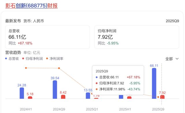 影石被迫跟进,让其陷入“增收不增利”的困境。2025年前三季度,影石的归母净利润7.92亿元,同比下滑5.95%,而销售费用翻倍至11.3亿元,全景无人机的研发、供应链切换成本进一步加剧了财务压力。