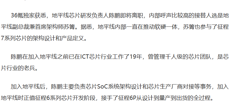 这种担忧并非杞人忧天,而是已经开始变成了现实:2026年3月,36氪报道称,地平线芯片研发负责人陈鹏即将离职,甚至有传闻称,陈鹏将与原COO联手创业。