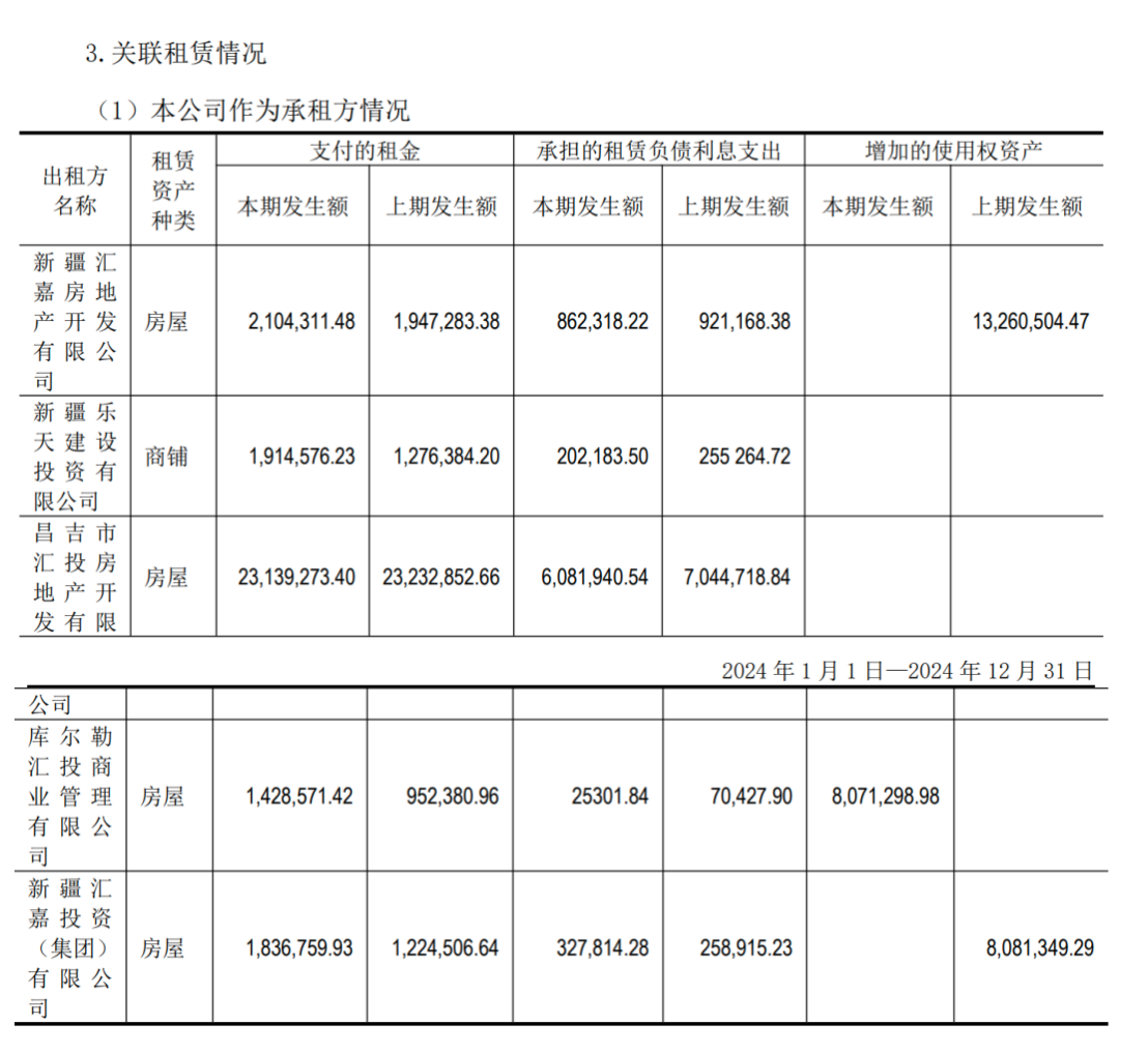 同时,公司与关联方之间的物业租赁交易亦保持常态化运作。2025年前三季度,汇嘉时代虽未在定期报告中单独披露物业租赁的具体金额,但根据2024年度审计报告显示,公司向关联方租赁的商场、仓储等物业面积合计达12.8万平方米,年租金(包括租赁负债利息)总额约3800万元。
